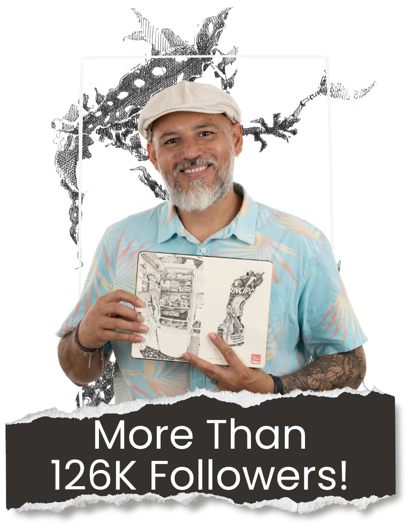 I’m a Colombian architect and sketchbook artist passionate about capturing the poetry of everyday life. For over three decades, drawing has been my way of observing the world — from the quiet corners of Ibagué, my hometown, to the vibrant streets of Barcelona, where I’m now based.
